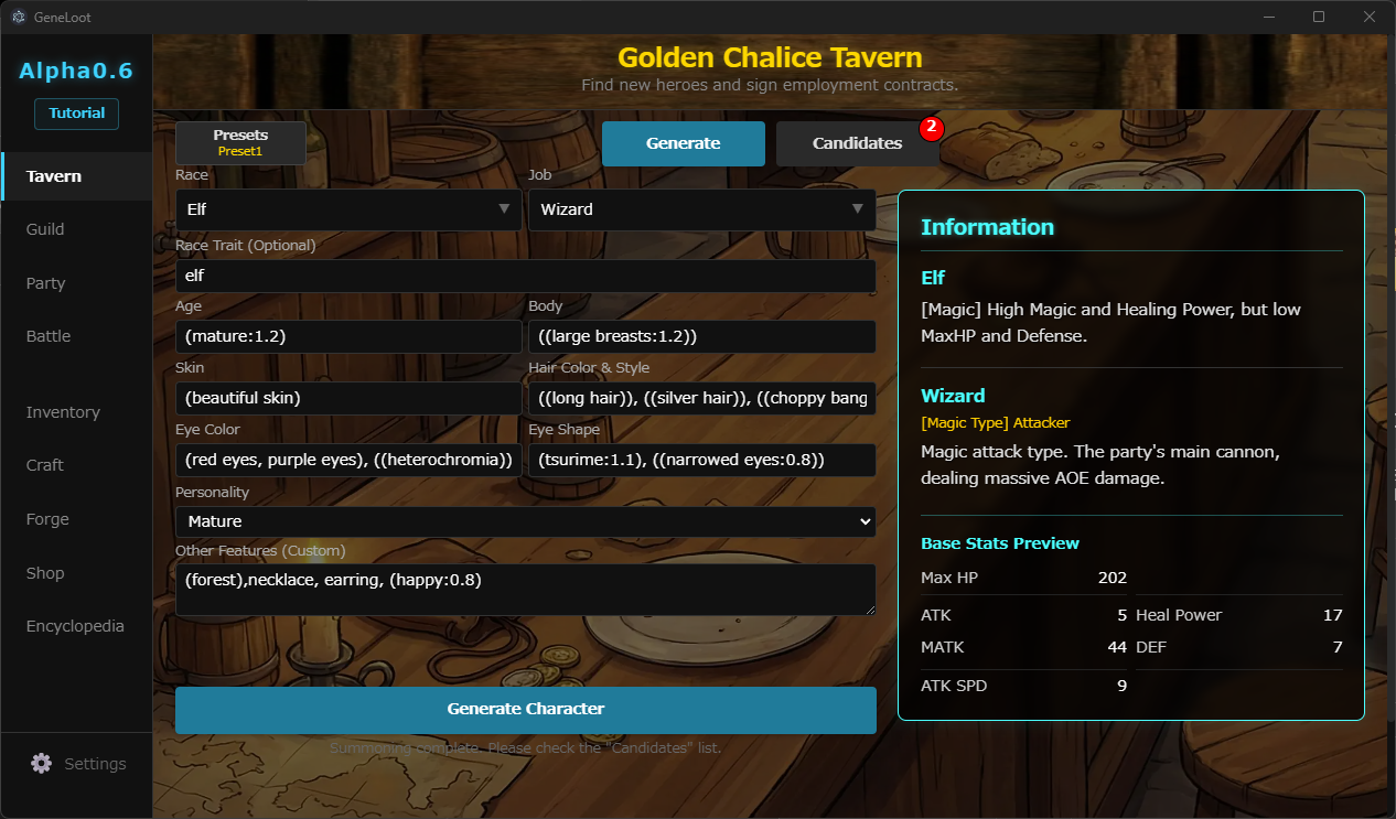 - Customize further with Special Materials (e.g., Thigh-highs Magic Stone) to add specific prompts and extra stats.
