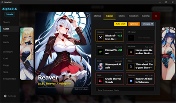 - Gameplay: Auto-battle system with equipment drops, Auto-Restart settings, and a Bulk Enhance feature.